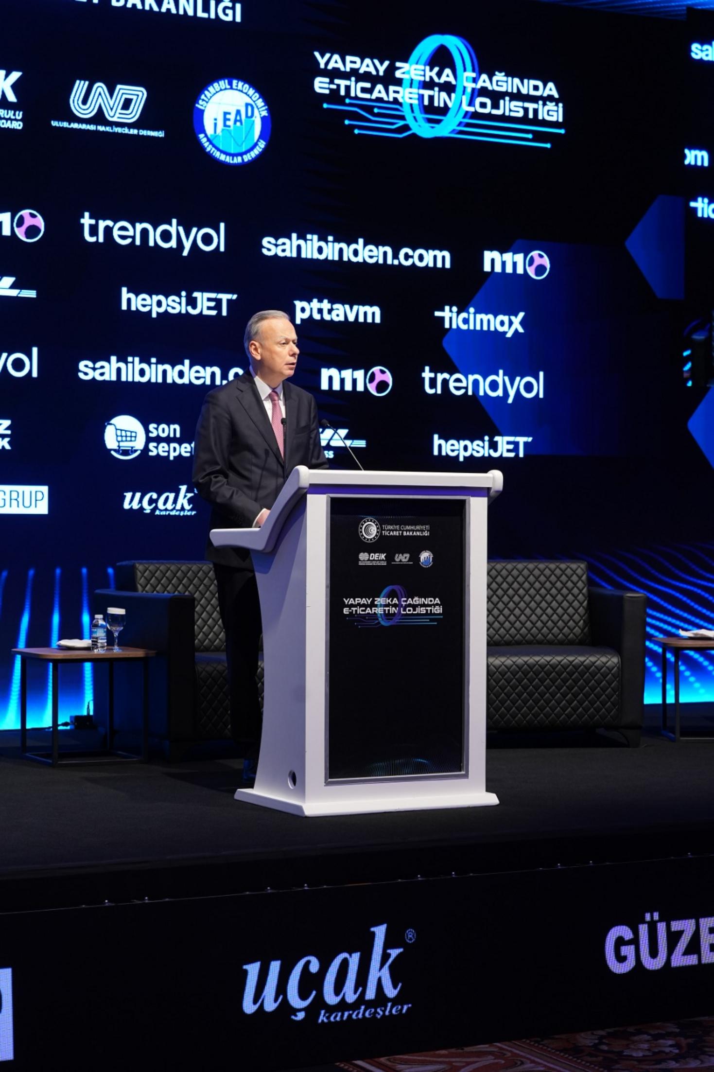 Ticaret Bakanlığı himayesinde, İstanbul Ekonomik Araştırmalar Derneği (İEAD) tarafından DEİK/Lojistik İş Konseyi, DEİK/Dijital Teknolojiler İş Konseyi ve Uluslararası Nakliyeciler Derneği’nin (UND) destekleriyle düzenlenen “Yapay Zekâ Çağında E‑Ticaretin Lojistiği Zirvesi” Grand Cevahir Hotel Convention Center’da gerçekleştirildi. Açılış konuşmasını yapan Ticaret Bakan Yardımcısı Volkan Ağar, Türkiye’nin ulaştırma altyapısında yeni yatırım hedeflerini ve lojistikte dijitalleşme adımlarını paylaştı.