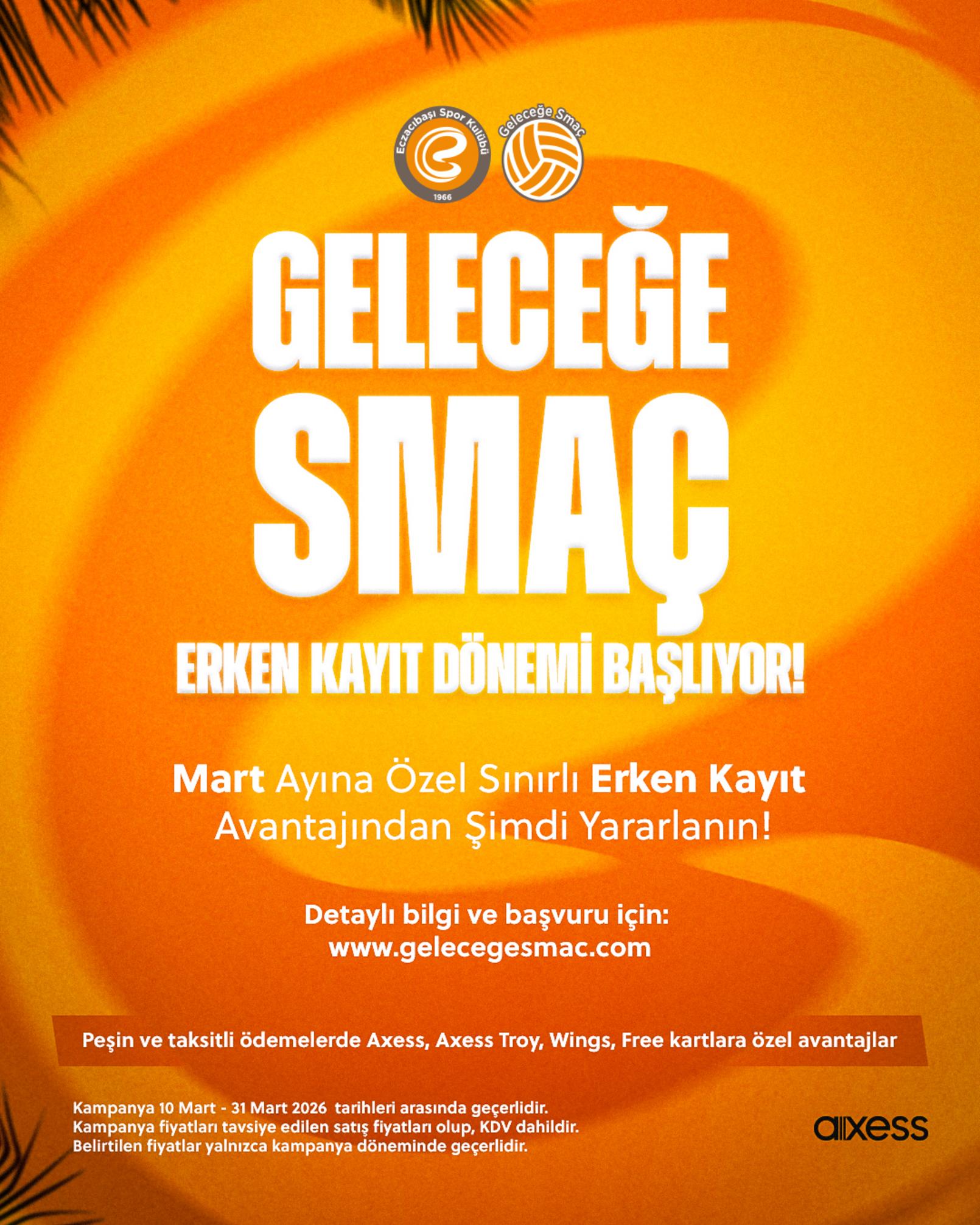Mart ayı itibarıyla başlayan erken kayıt döneminde, peşin ve taksitli ödemelerde Axess, Axess Troy, Wings ve Free kartlara özel fırsatlar sunuluyor. 1-31 Mart 2026 arasında geçerli kampanya ile voleybol eğitimi almak isteyen genç yetenekler, yeni sezon için yerlerini avantajlı koşullarla ayırt edebilecek.