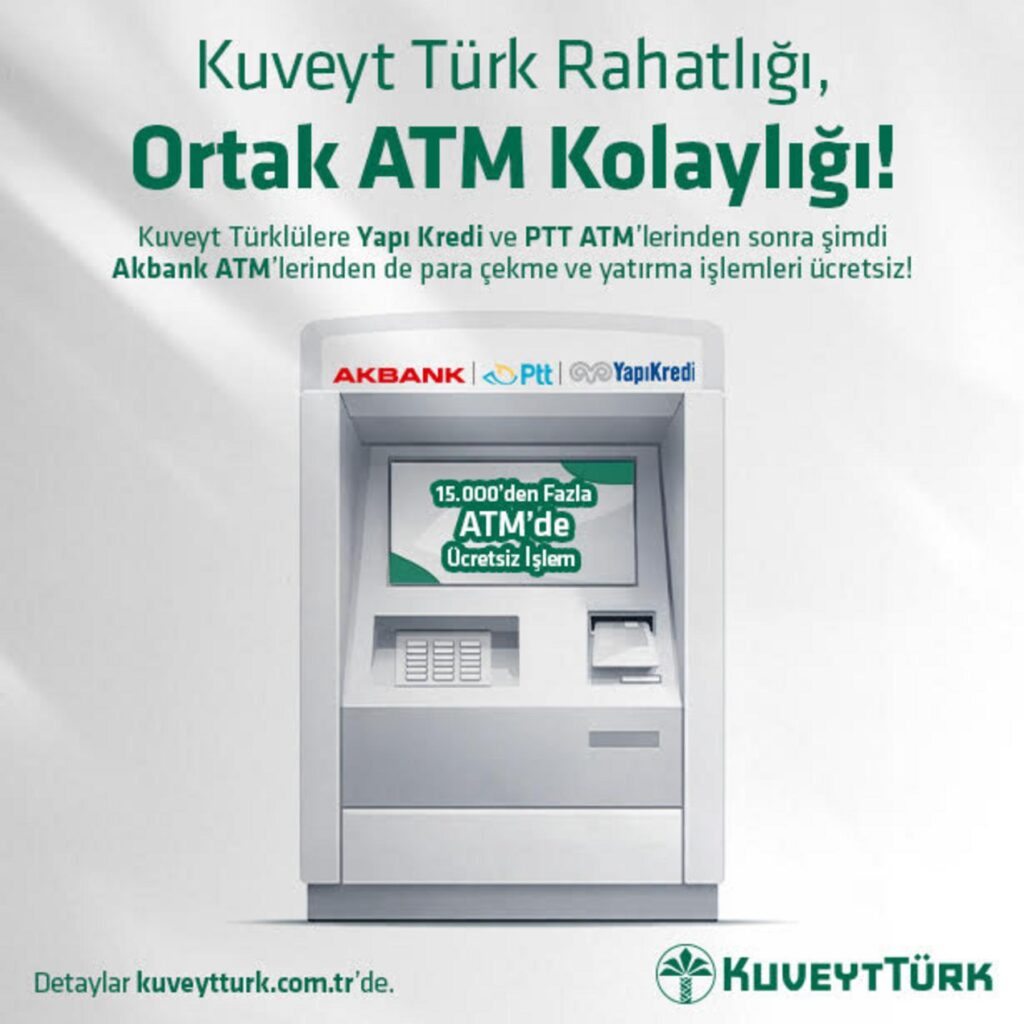Kuveyt Türk müşterileri, Akbank ve Yapı Kredi ATM’lerinden para çekme ve para yatırma işlemlerini ücretsiz gerçekleştirebilecek.