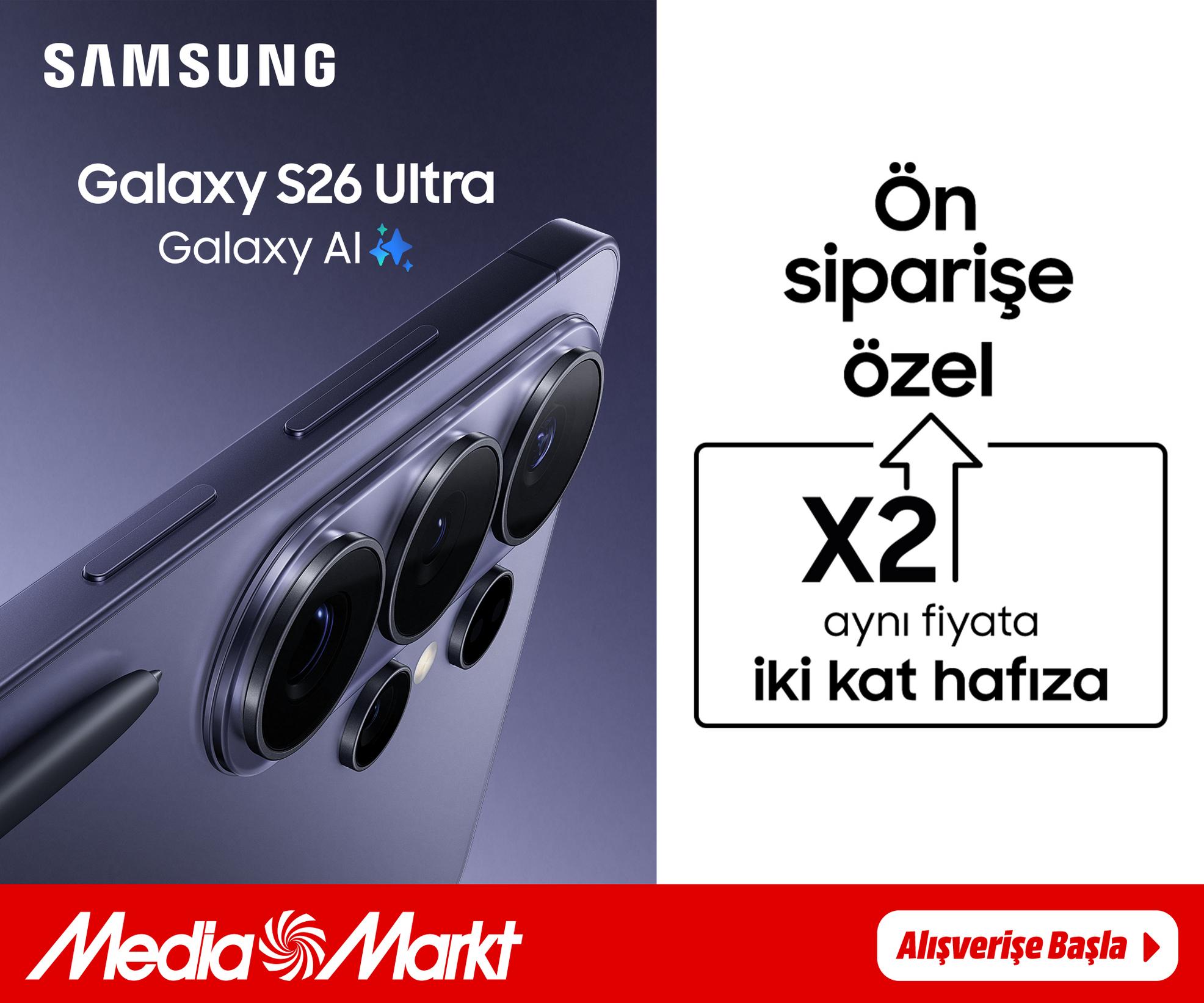 MediaMarkt Türkiye, Samsung’un yeni amiral gemisi Galaxy S26 Serisi için ön sipariş sürecini başlattı. Kampanya kapsamında tüketiciler, ön siparişte aynı fiyata 2 kat hafıza fırsatından yararlanabiliyor. Satışlar MediaMarkt mağazalarında, mobil uygulamada ve çevrimiçi kanalda eş zamanlı sürdürülüyor.