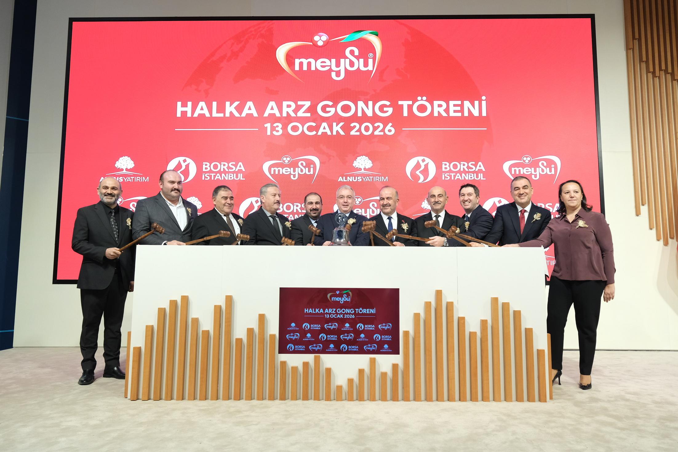 13 Ocak 2026 itibarıyla Meysu Gıda Sanayi ve Ticaret A.Ş. hisseleri, Borsa İstanbul’da düzenlenen gong töreninin ardından işlem görmeye başladı. Alnus Yatırım aracılığıyla pay başına 7,50 TL sabit fiyatla gerçekleşen halka arzın büyüklüğü 1 milyar 312 milyon 500 bin TL olurken, toplam tahsisat tutarının 8,5 katı talep toplandı.
