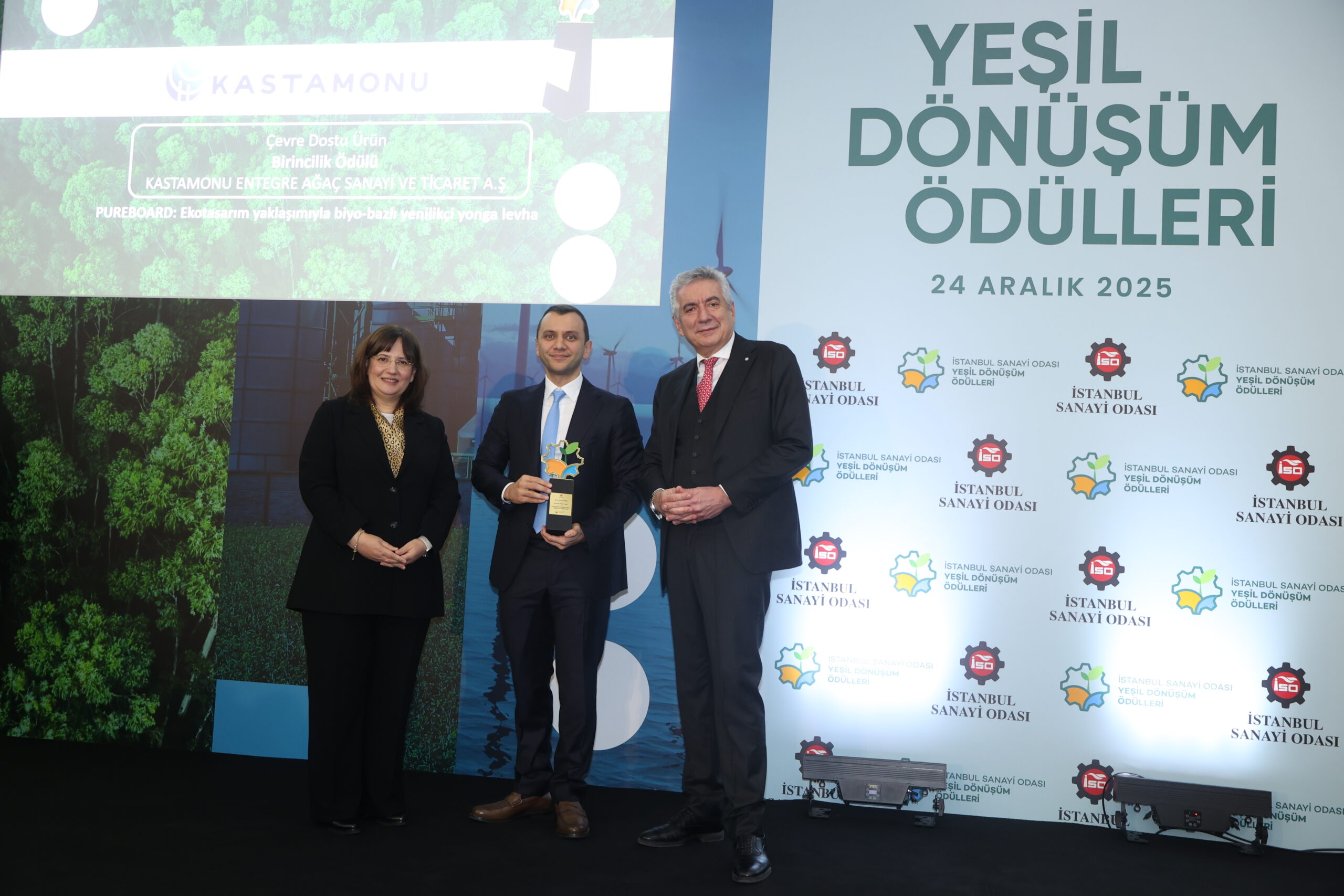 Kastamonu Entegre’nin çevre ve insan sağlığı odaklı inovasyon anlayışıyla geliştirdiği PureBoard, İSO Yeşil Dönüşüm Ödülleri 2025’te Çevre Dostu Ürün kategorisinin birincisi seçildi. Ödül, 24 Aralık’ta düzenlenen törende Kastamonu Entegre Global Satış ve Pazarlama Direktörü Talha Aydın’a takdim edildi.