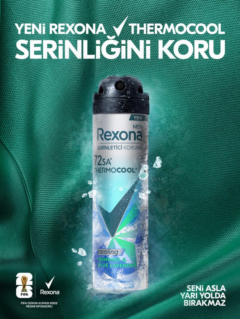 Rexona, FIFA Dünya Kupası 2026’nın Resmi Sponsoru olarak hareket ve performans odağını uluslararası platforma taşıyor. Marka, Thermocool serisinin yanı sıra Hakan Çalhanoğlu ve FIFA Dünya Kupası 2026 logolu sınırlı sayıda deodorantlarını da taraftarlarla buluşturuyor.