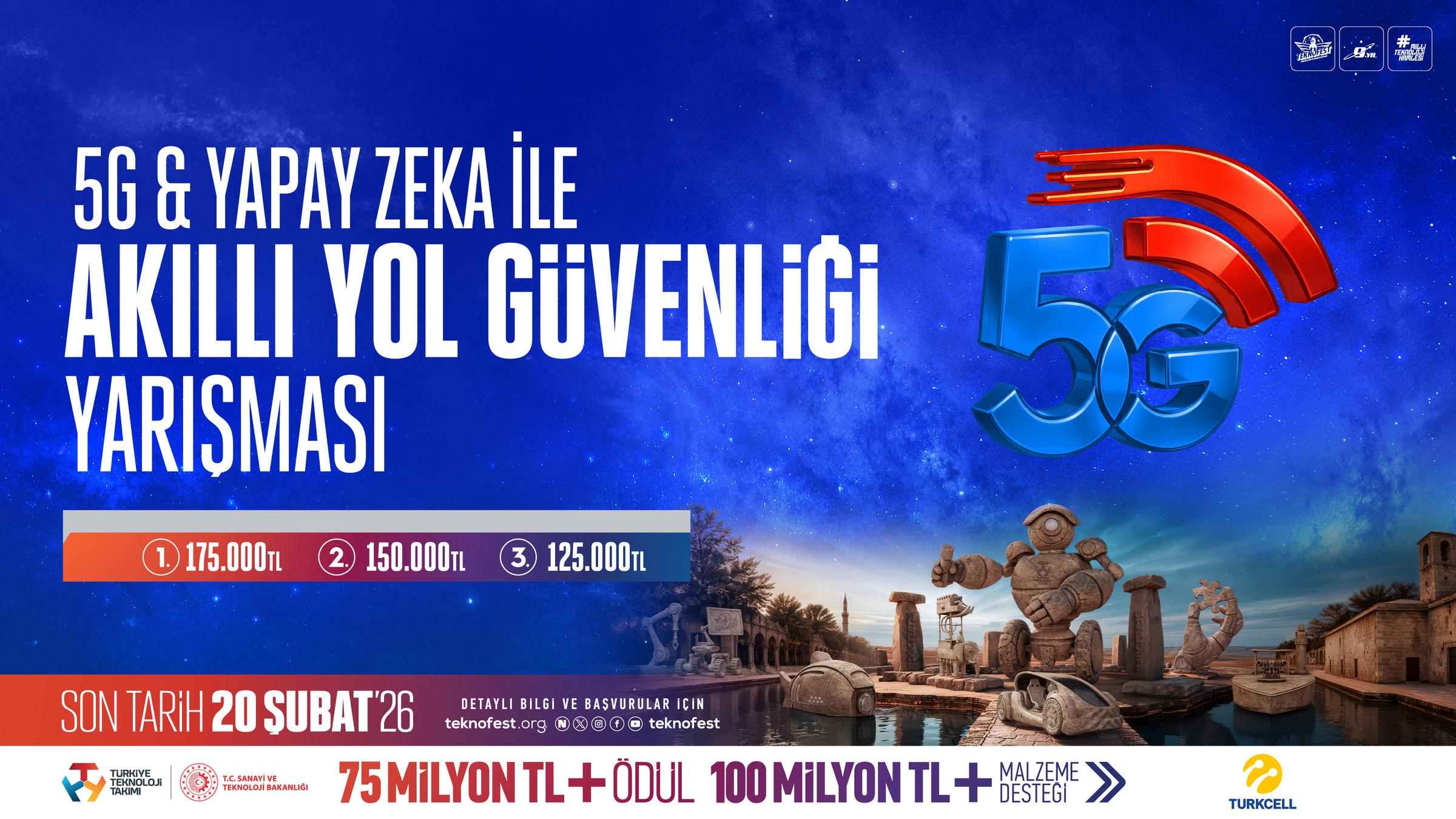 18 Şubat 2026 — TEKNOFEST, teknoloji yarışmaları ekosistemine bu yıl ilk kez dahil ettiği 5G & Yapay Zekâ ile Akıllı Yol Güvenliği Yarışması’nı duyurdu. Gençlerin yenilikçi fikirlerini gerçek hayata taşımasını hedefleyen yarışma, akıllı yol güvenliği alanında 5G ve yapay zekâ odaklı çözümleri teşvik ediyor.