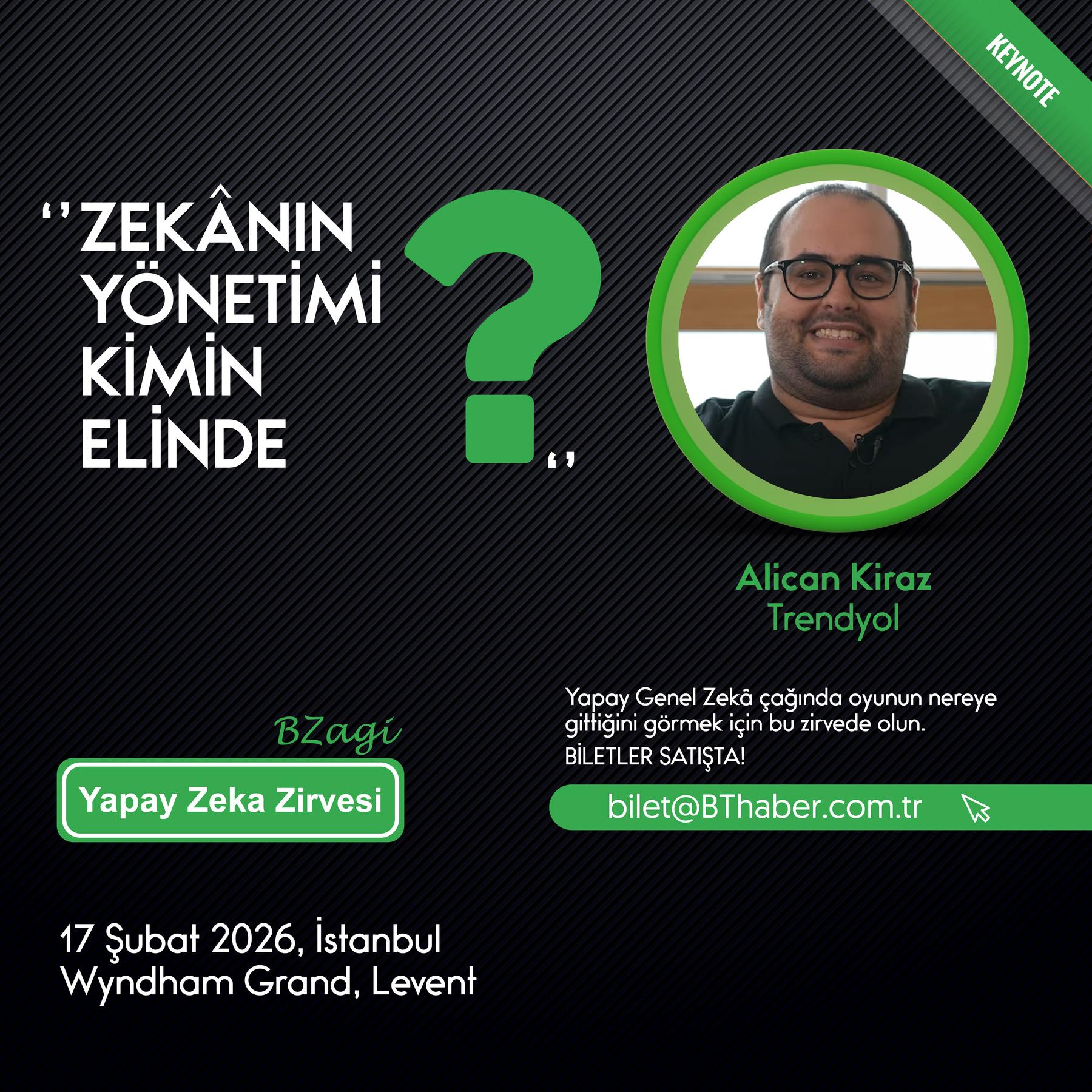 Açılış konuşmasını BThaber Başkan Yardımcısı Neslihan Aksun “AGI Eşiğinde: Kurumlar için Yeni Bir Zekâ Çağı” başlığıyla yapacak. Zirvenin keynote konuşmacısı Trendyol Group Sr. Staff Engineer Alican Kiraz ise “Koddan Karara: Zekânın Yönetimi Kimin Elinde?” sunumuyla karar alma mekanizmalarının yapay zekâ çağında nasıl yeniden şekillendiğini ele alacak. Programın devamında ana sponsor Treomind adına CEO ve Yönetici Ortağı Alper Yıldız sahnede olacak.